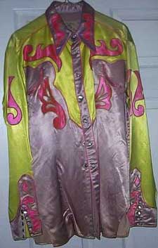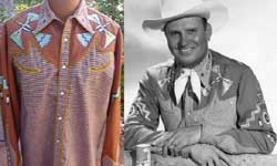NEW ADDITIONS: Two new Gene Autry's shirts, photos above and right, have been added. The one on the right has this inscription as shown in the photo on the left: "I wore this shirt in Madison Square Garden Rodeo--1940-1941. Gene Autry" |